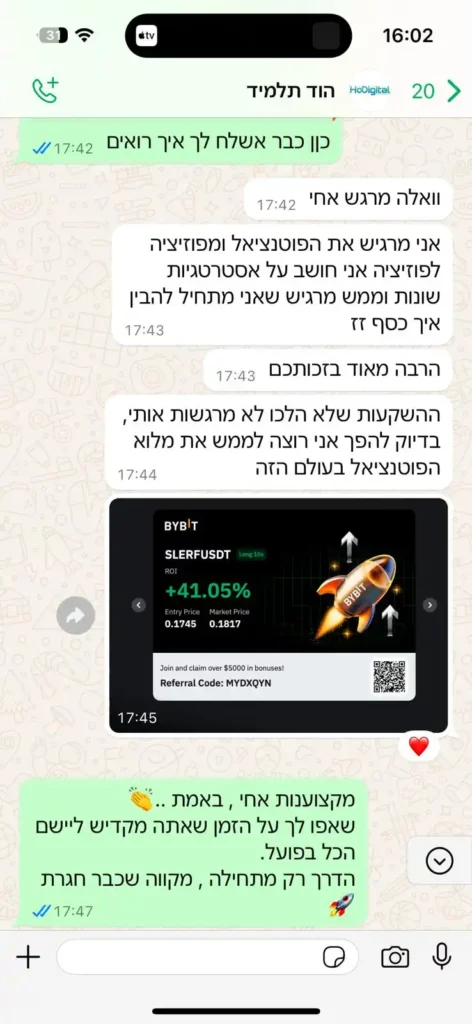הכול השתנה כשפגשנו אדם שהראה לנו שאפשר לחשוב אחרת. נחשפנו לעולם המסחר, ולמרות שהדרך הייתה מלאה בלמידה, אתגרים וטעויות – גילינו במהרה שזה הרבה מעבר לכסף.